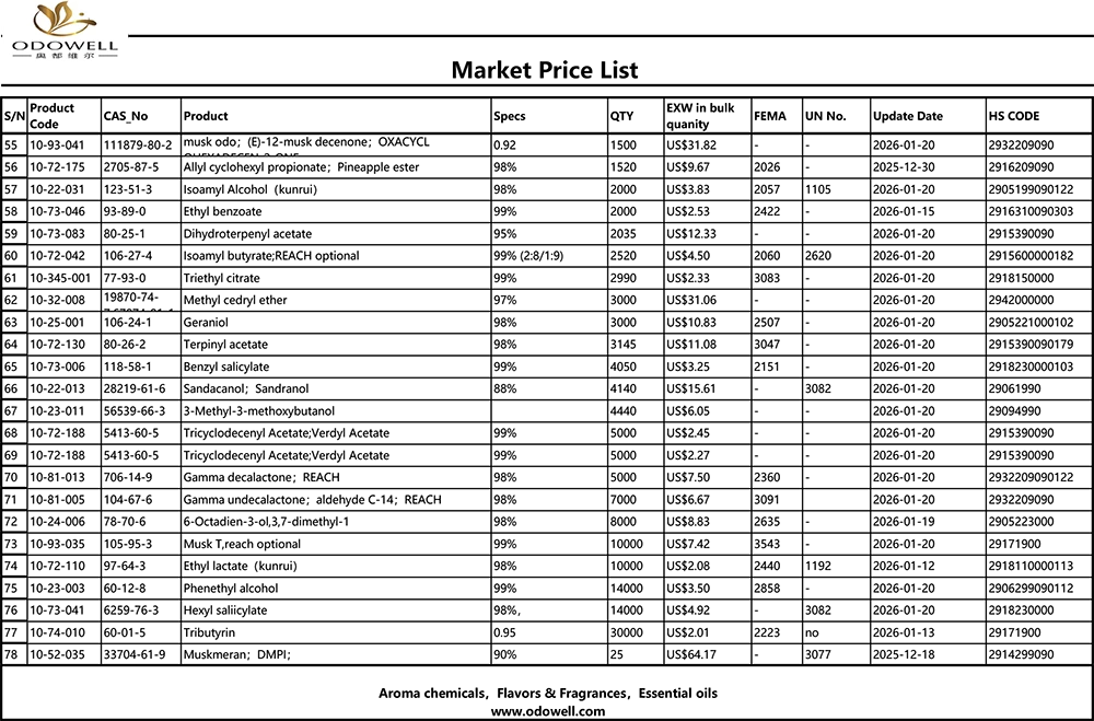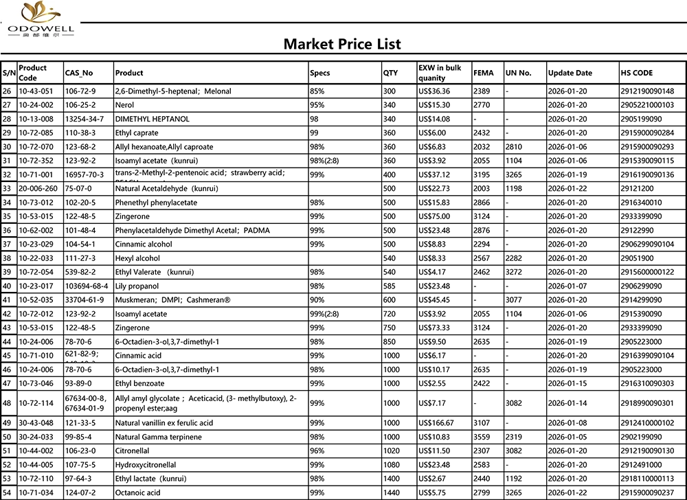 Odowell-बजार मूल्य सूची-2025.12.27-2026.1.22